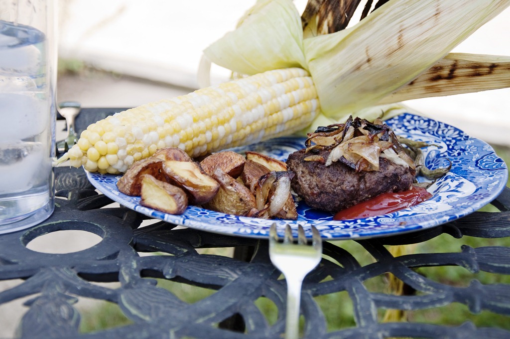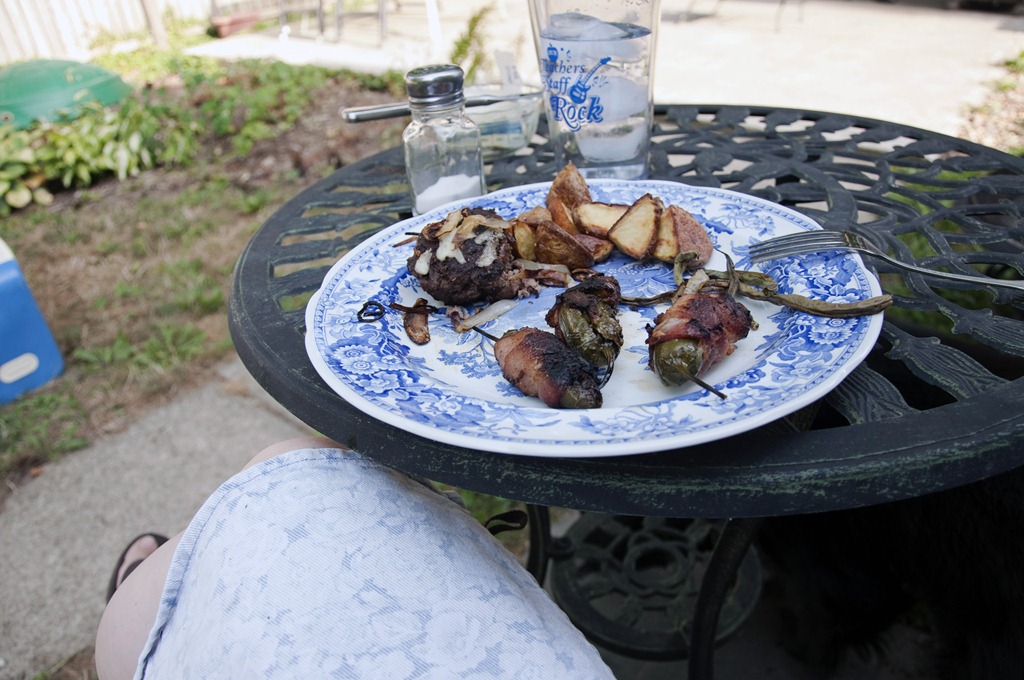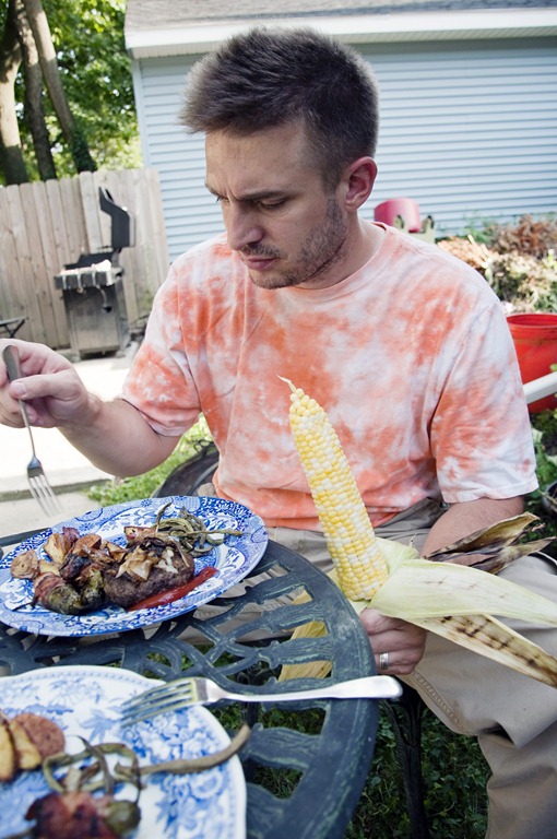 Anyways, it was a really good dinner. I was laughing with Chad that we had the grill going for our veg, but we did our burgers inside on the stove. We’re weird like that (and we like pan-fried burgers. so. very. much.)