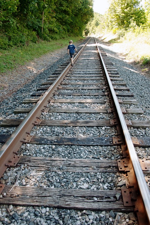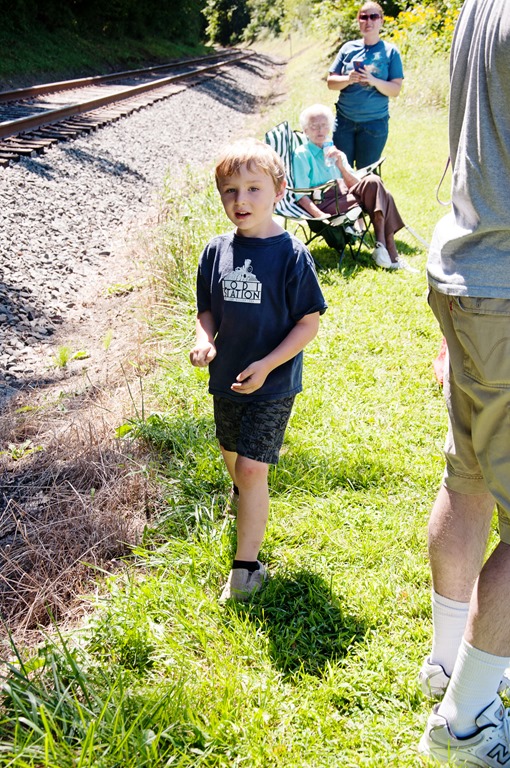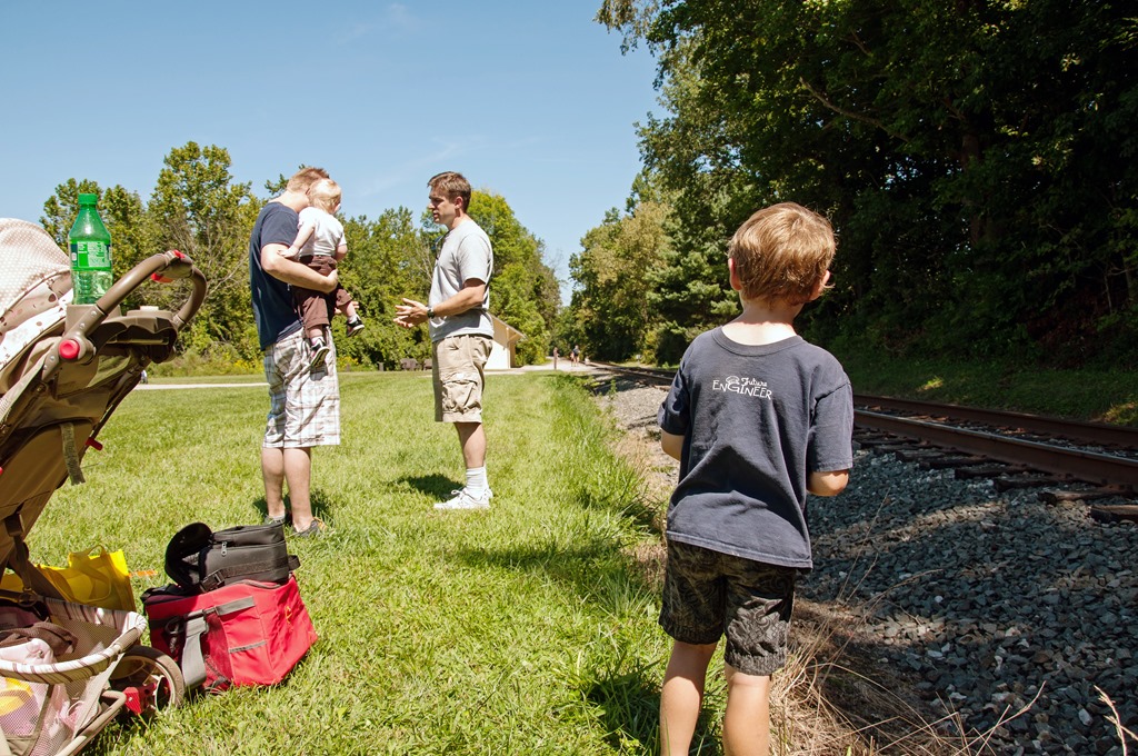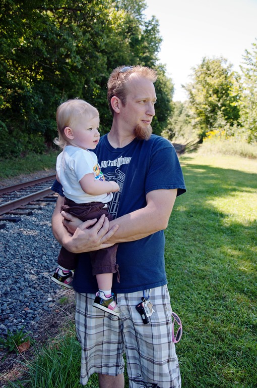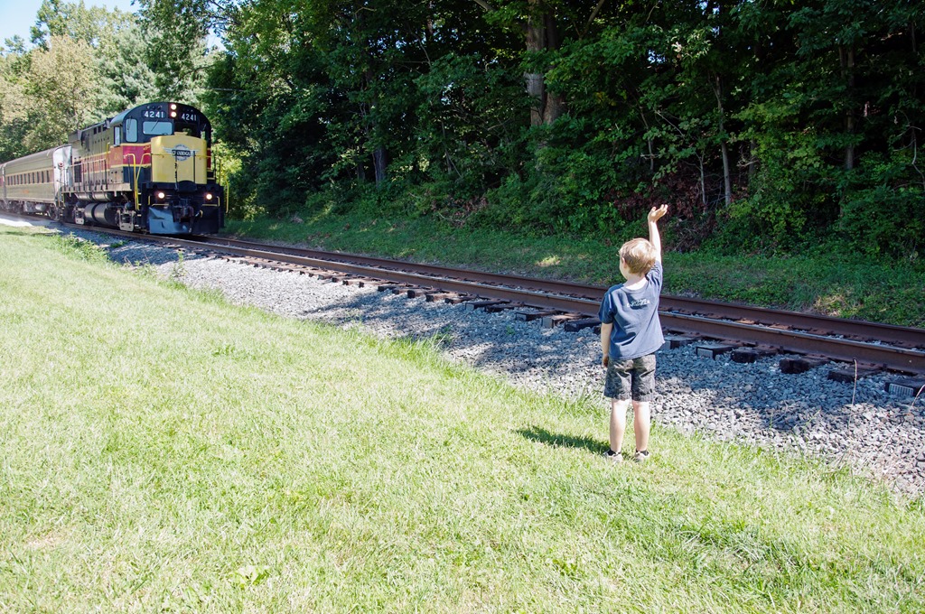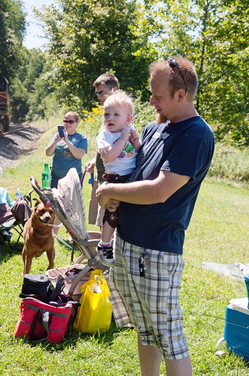 Ok, remember those tracks I was letting my kid play on? Well, just to make this outing absolutely AWESOME, a train came by! The Cuyahoga Valley Scenic Railroad runs right through here, and on summer weekends, you can catch a ride with your bike back to the parking lot. Seems like cheating, but people do it. Aiden was so thrilled, I can’t even tell you. And Piper thought it was pretty cool too. Whistles and waving and lots of happy people.
