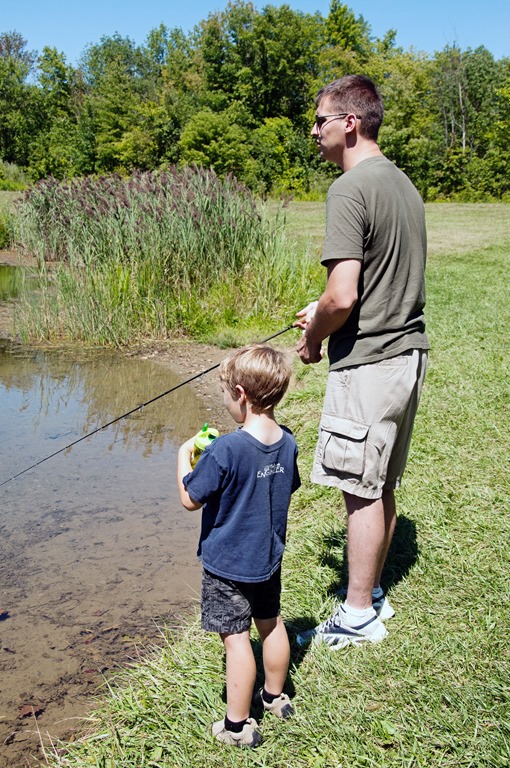 The best part about these photos is that Chad is casting with Aiden’s Sponge Bob toy fishing pole. The fish actually followed the plastic pink fish on the end of this line, but they never took a nibble. It is surprisingly fun to play with.