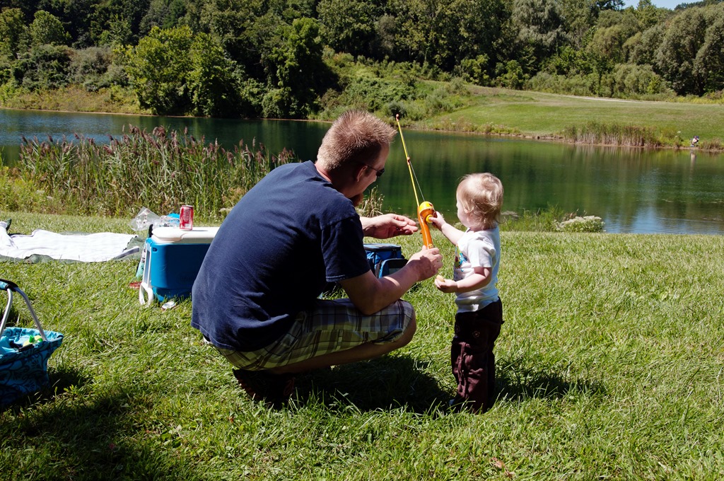 Yesterday, we had a lovely outing with my cousins Mike & Suzi, my Granny Annie, and my brother and sweet niece. We met at Indigo Lake down by the Cuyahoga Valley National Park for a picnic and some fishing. We mostly did the picnic part, though Aiden and Mike tried really hard to catch some fish. It was just too hot and the little ones in the very clear shallows weren’t fooled by the lures. Still, Aiden had a really good time and was surprisingly patient and focused. I think I see more fishing in our future, especially if his fishing Grandpa ever visits us again. Seeing Jonathan and Piper was so much fun for me—I love seeing my little brother being such a wonderful daddy. And Piper is my favorite girl ever. I love her so much, my heart clenches a bit when I see her.