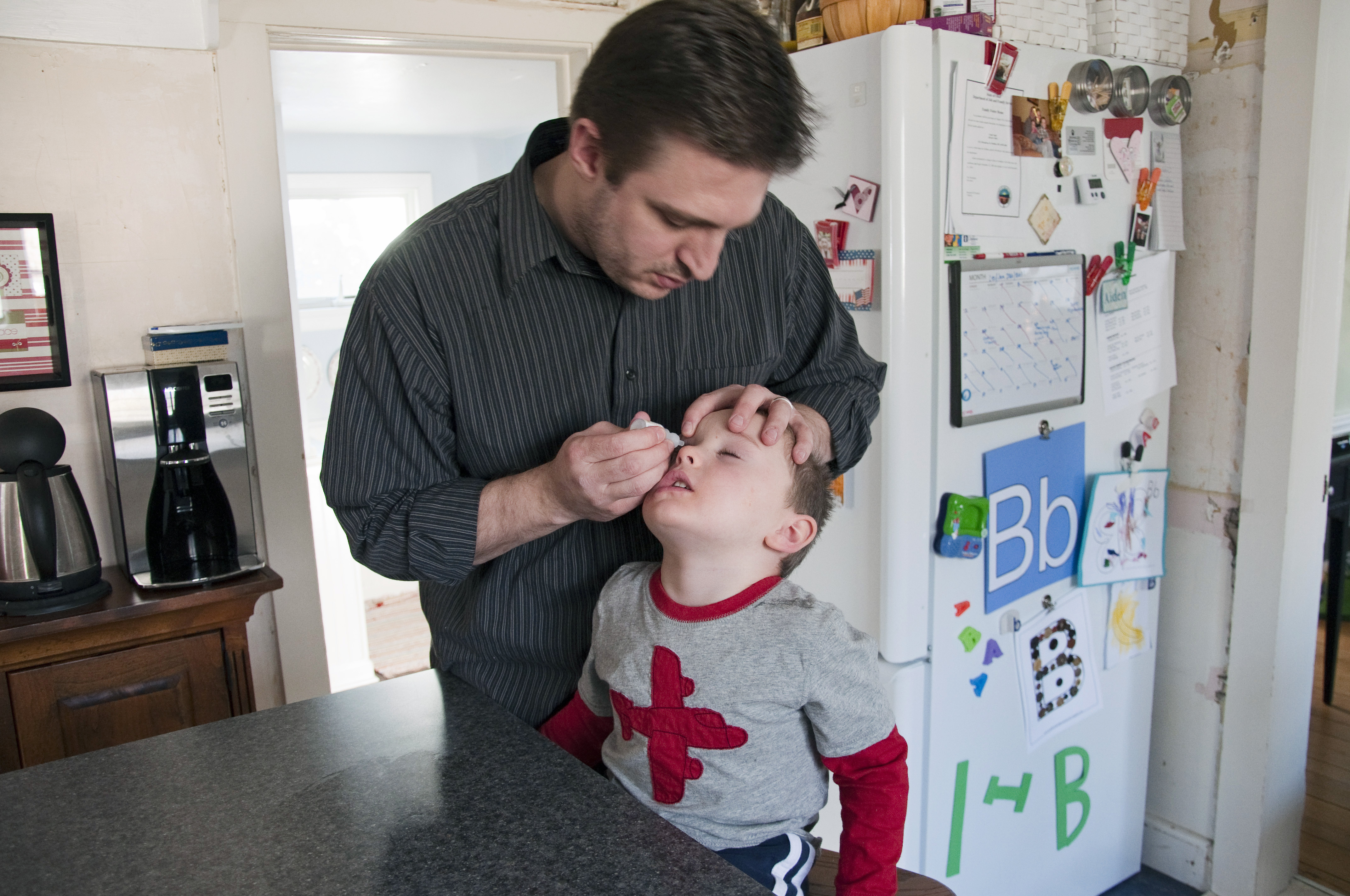 The storm window was ice-glued to the frame, so he had to chisel away at the ice and pry the window off using screwdrivers and paint scrapers. Good times.