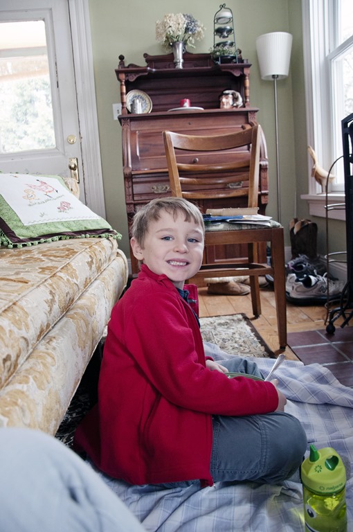 He lost his first tooth! I am not a tooth person. I think teeth are gross if they’re not where they’re supposed to be. Don’t show me that wiggly tooth. Don’t talk about it hanging there. Eww, eww, eww. That’s why this photo is black and white. So I don’t have to look at the dark red spot where that tooth was. Sorry, I’m moving on now. I did have to tell him, though, that because it’s Christmas, the tooth fairy is very busy helping Santa right now, and she might be a few days late. She’s also very tired. Very. very. Tired.