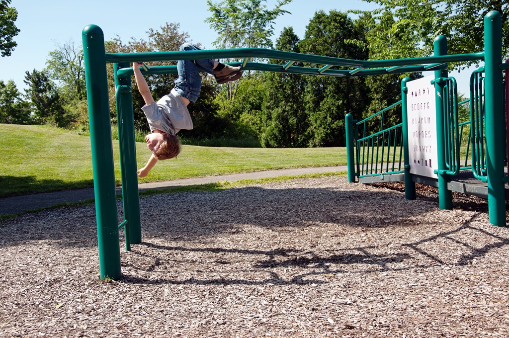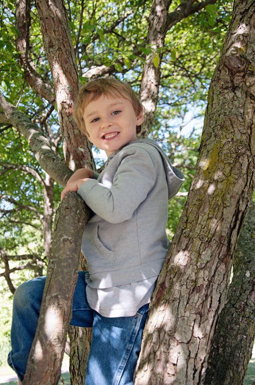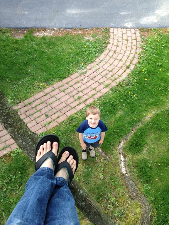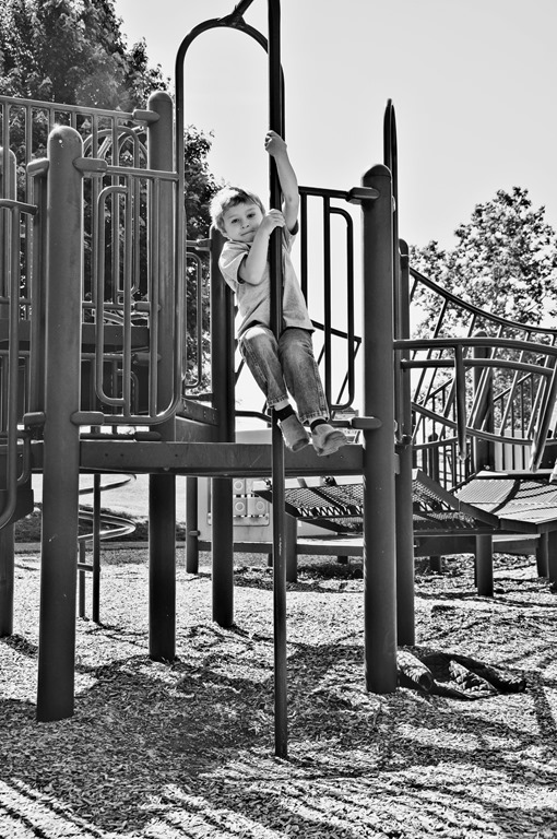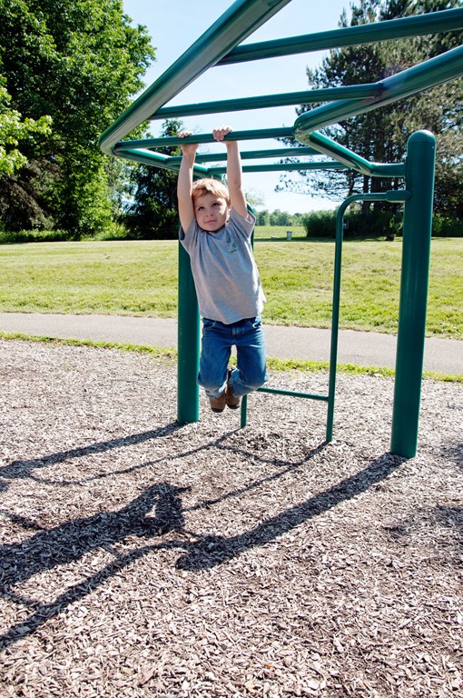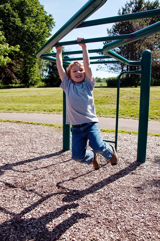 I love this thing, too. He has always been a jumper, since we first met him. He throws himself off of everything, no fear whatsoever. But he has never been much of a climber, approaching monkey bars and climbing poles and trees with reluctance. But suddenly, after two rough weeks of challenging behavior and bedtimes, he has emerged on the other side as a CLIMBER.
