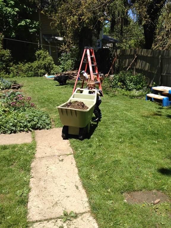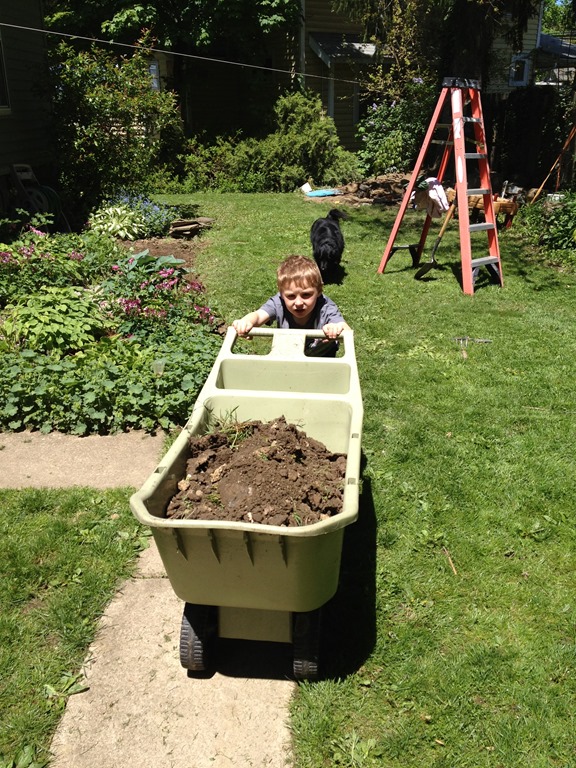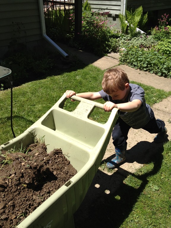 He insisted on pushing this _very_ heavy wheelbarrow all by himself to the compost pile.