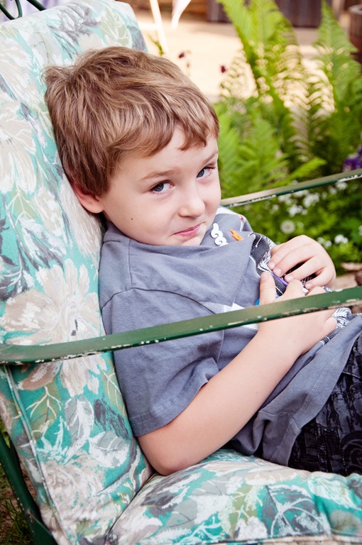 My dad and stepmom have been sending Aiden camping gear for his birthdays lately. Last year, it was a really cool tent. This year, a sleeping bag. He has been dying, DYING, to have a “camping day.” So we planned all last week to camp out on Friday night. We had a great day together (Chad stayed home!), and in the late afternoon, we set up the tent and got ready for our adventure.
