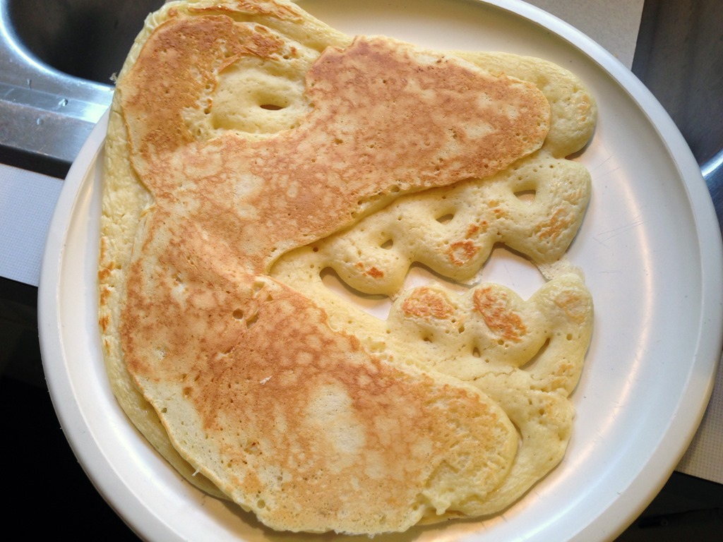 We celebrated our camping debacle with dinosaur pancakes on Saturday morning.