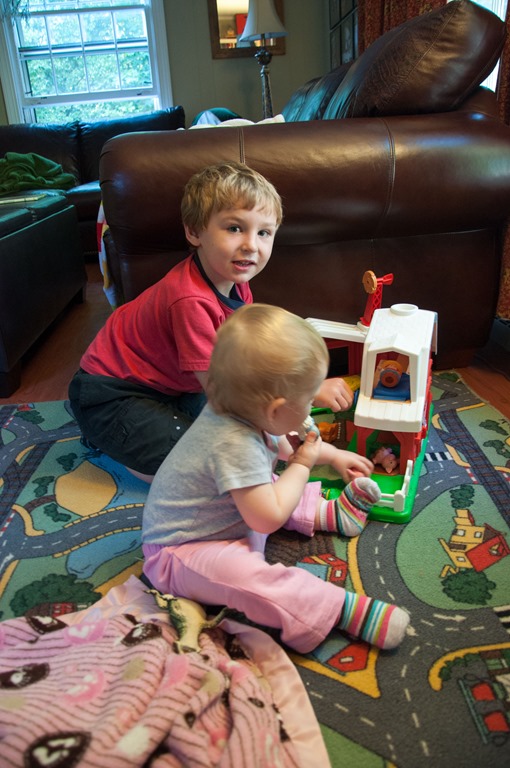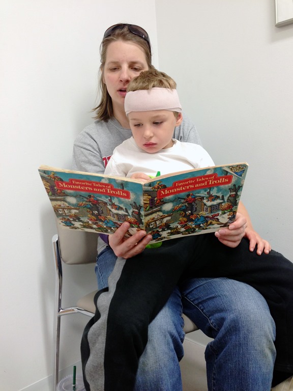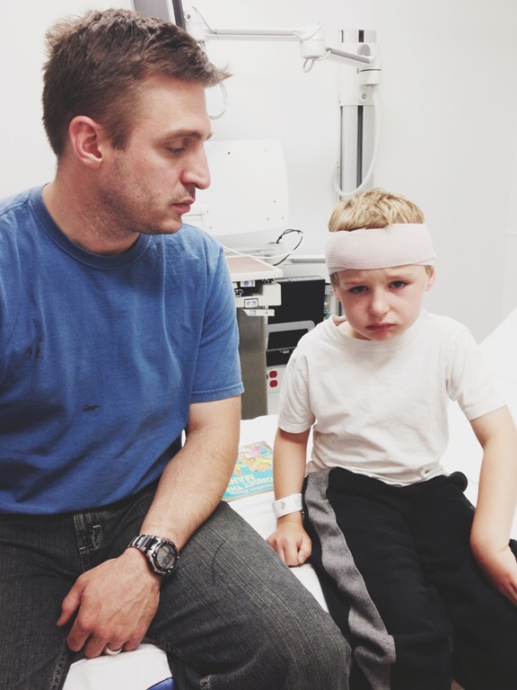 But then, Sunday afternoon, Aiden fell and smacked his head on the driveway, and we ended up spending our evening at the ER.