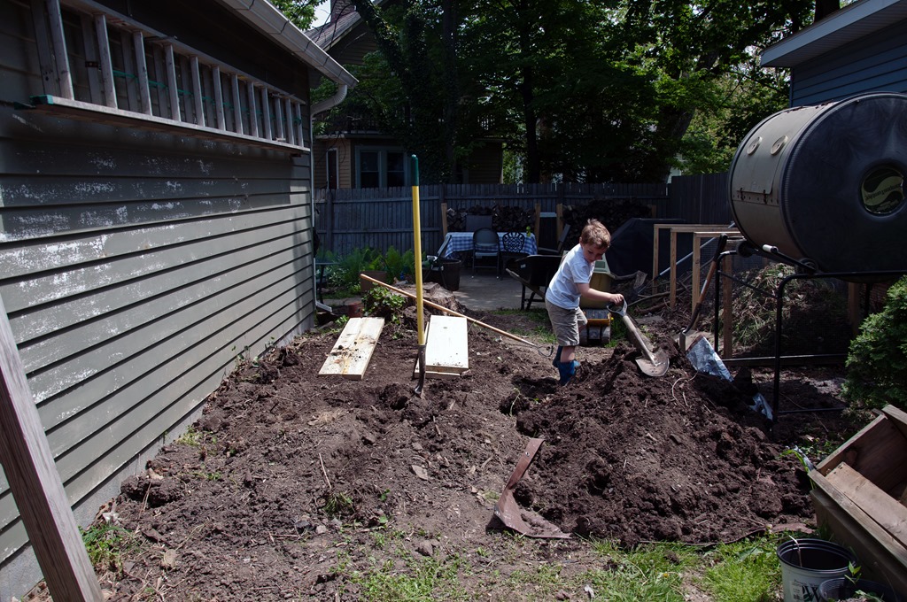 See that pile that Aiden is working on? Compost. Beautiful, beautiful compost. That is going into the raised beds.