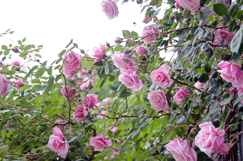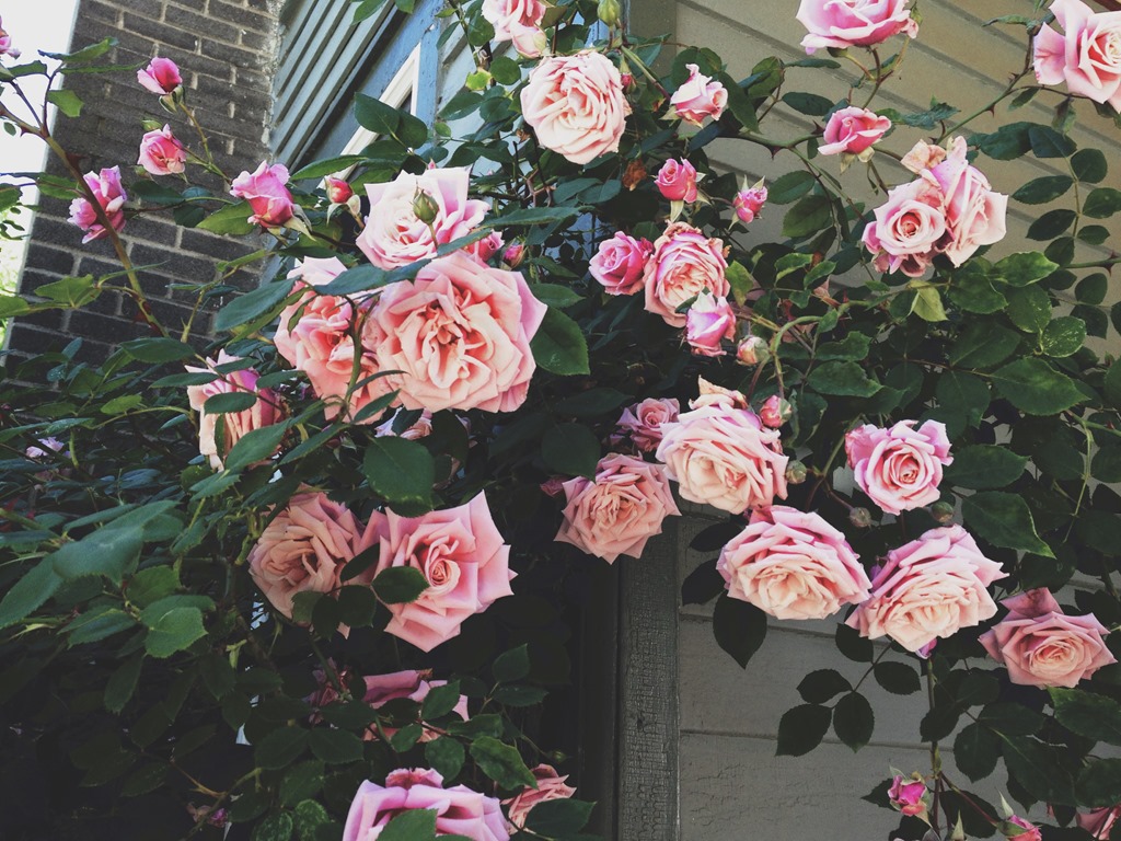 Last fall, I gave this bush a severe lopping, donning all kinds of protective gear, because this is a vicious rose, a mean and nasty rose, a rip-your-skin-off-and-flay-you-alive rose. We’re talking bike helmets, people.