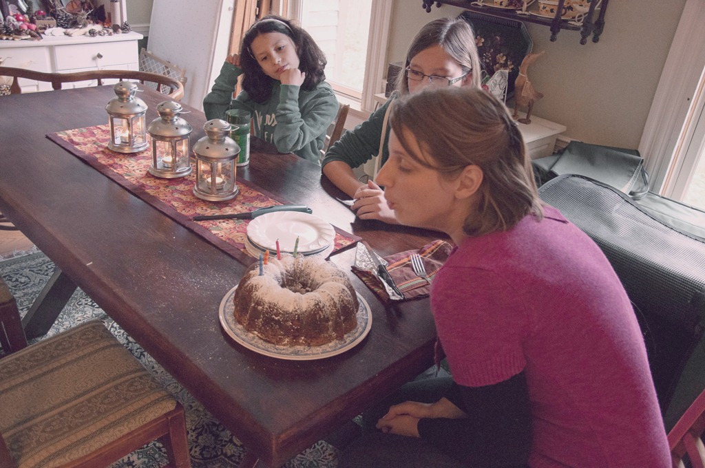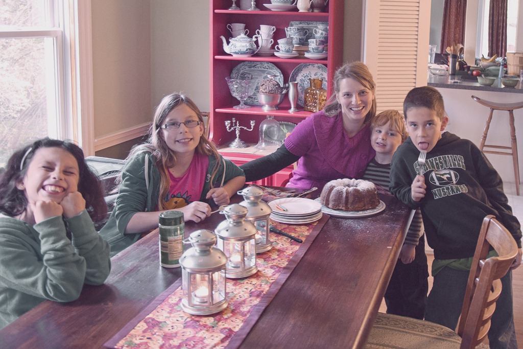 Ben immediately went to the back to play with Aiden, and they were SO happy to mess with the new remote-controlled car and the Legos. The girls, chatty and happy and bright like little birds, stayed in the kitchen with me, and we made apple cake. “You’re so FAST at measuring!” exclaimed Emma, who got up at six o’clock that morning to bake cookies to bring over to me. “Well,” I replied, “I’ve been measuring for a long time!”