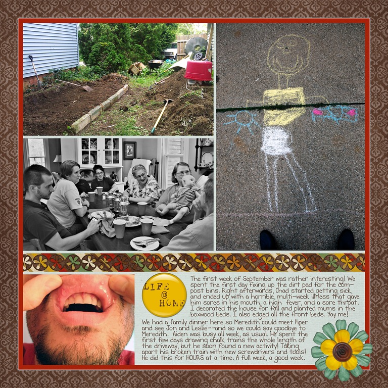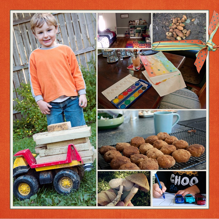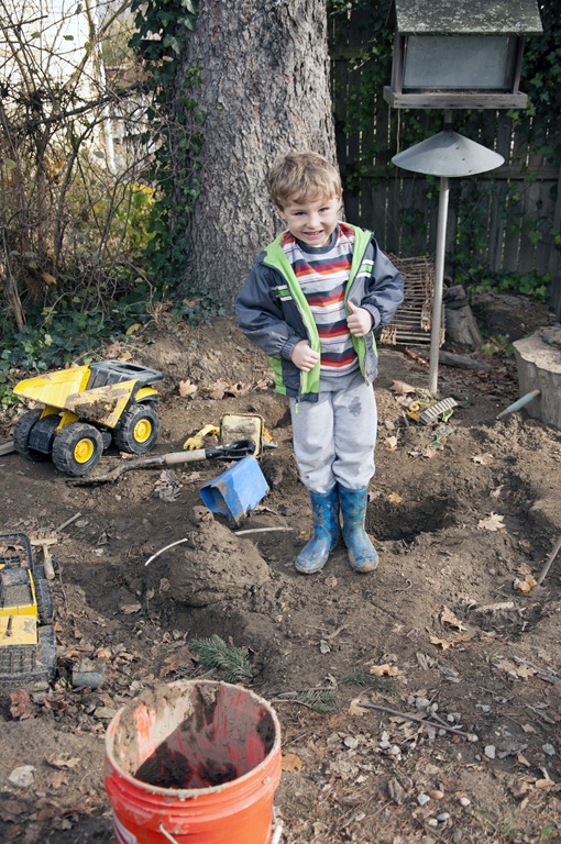 Later, Olivia sat outside on a stump in the dirt pile and read her book aloud to Aiden, who was digging in his city. The twins were inside, meandering down memory land as we watched some Silly Symphonies.