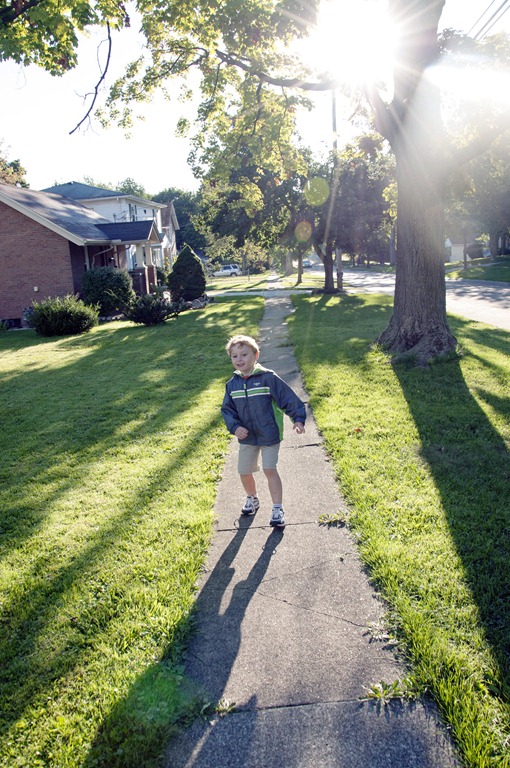 We start our day with a walk. Sometimes we do the Block. Sometimes, we do the Big Block. Sometimes we go to a park. As soon as the trail down the street is finished, we are going to do that most of the time.