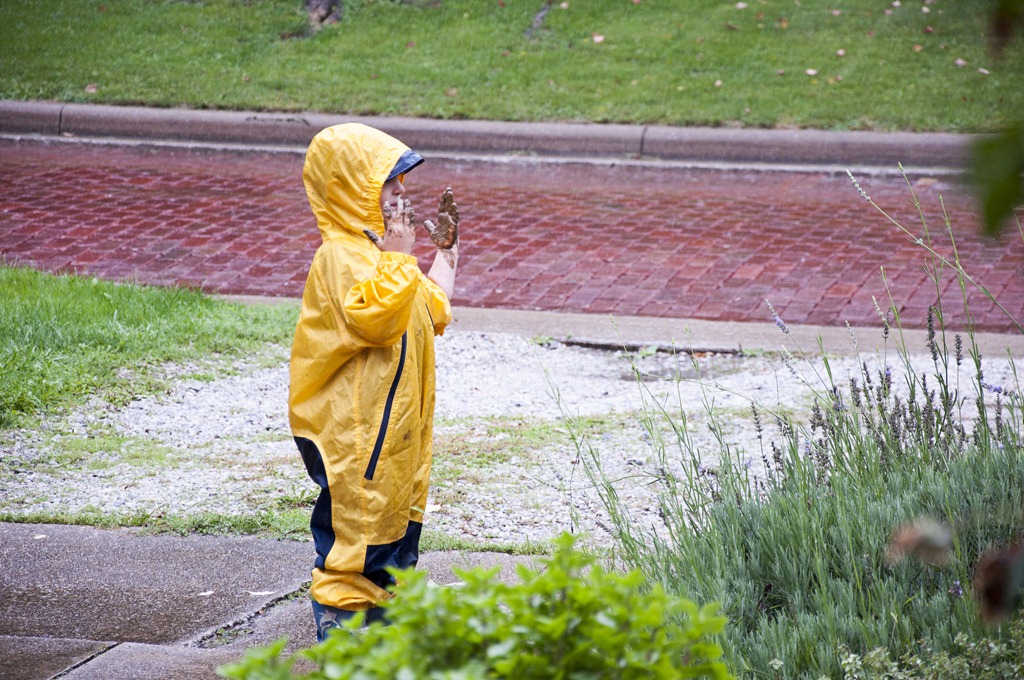 He did this for HOURS. Then the rain came, and he came in to don his rain suit and work in the dirt pile. Because that’s what rain means, right?