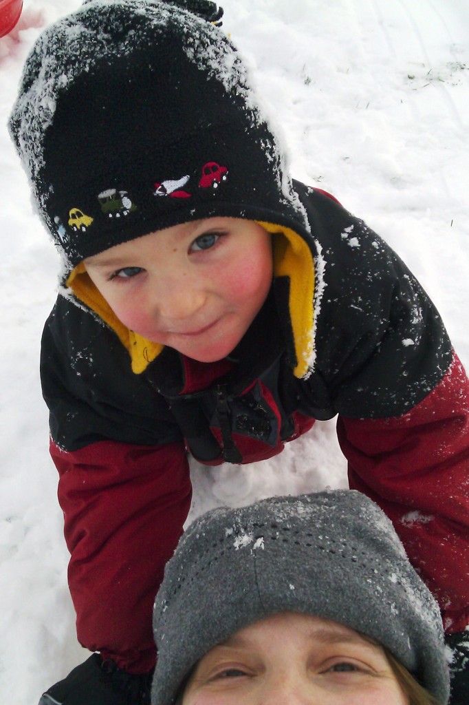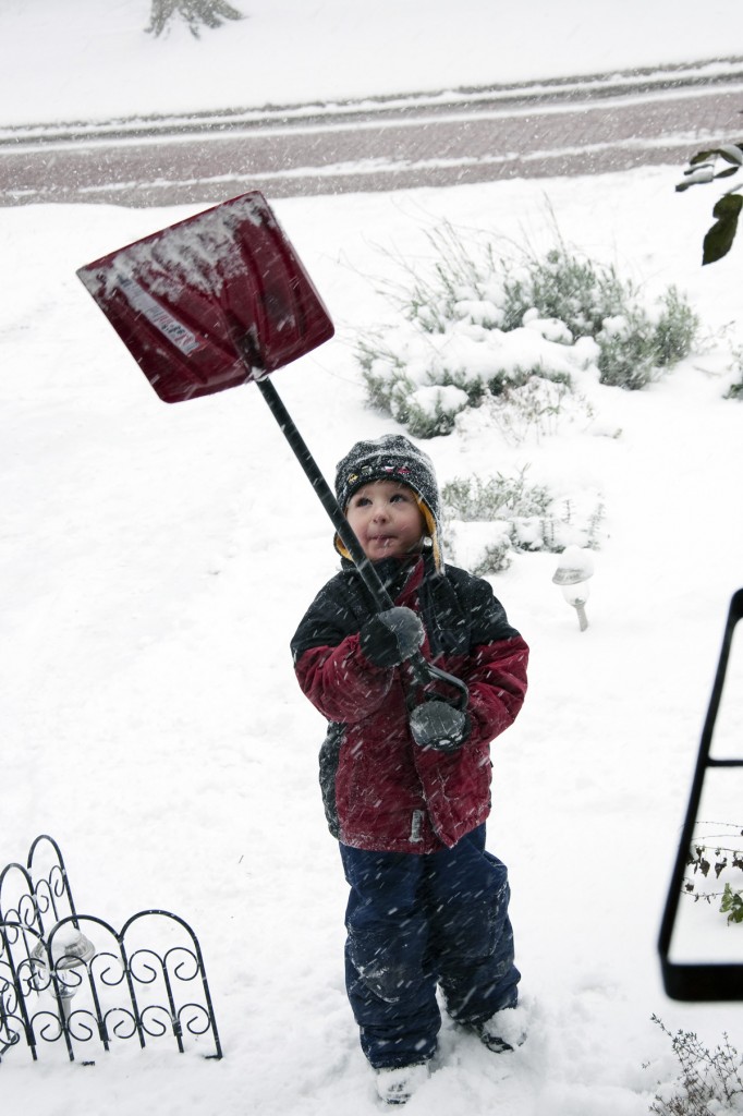 We also had our first big snow of the winter, of which we took full advantage. First, we put the kid to work with his new shovel: