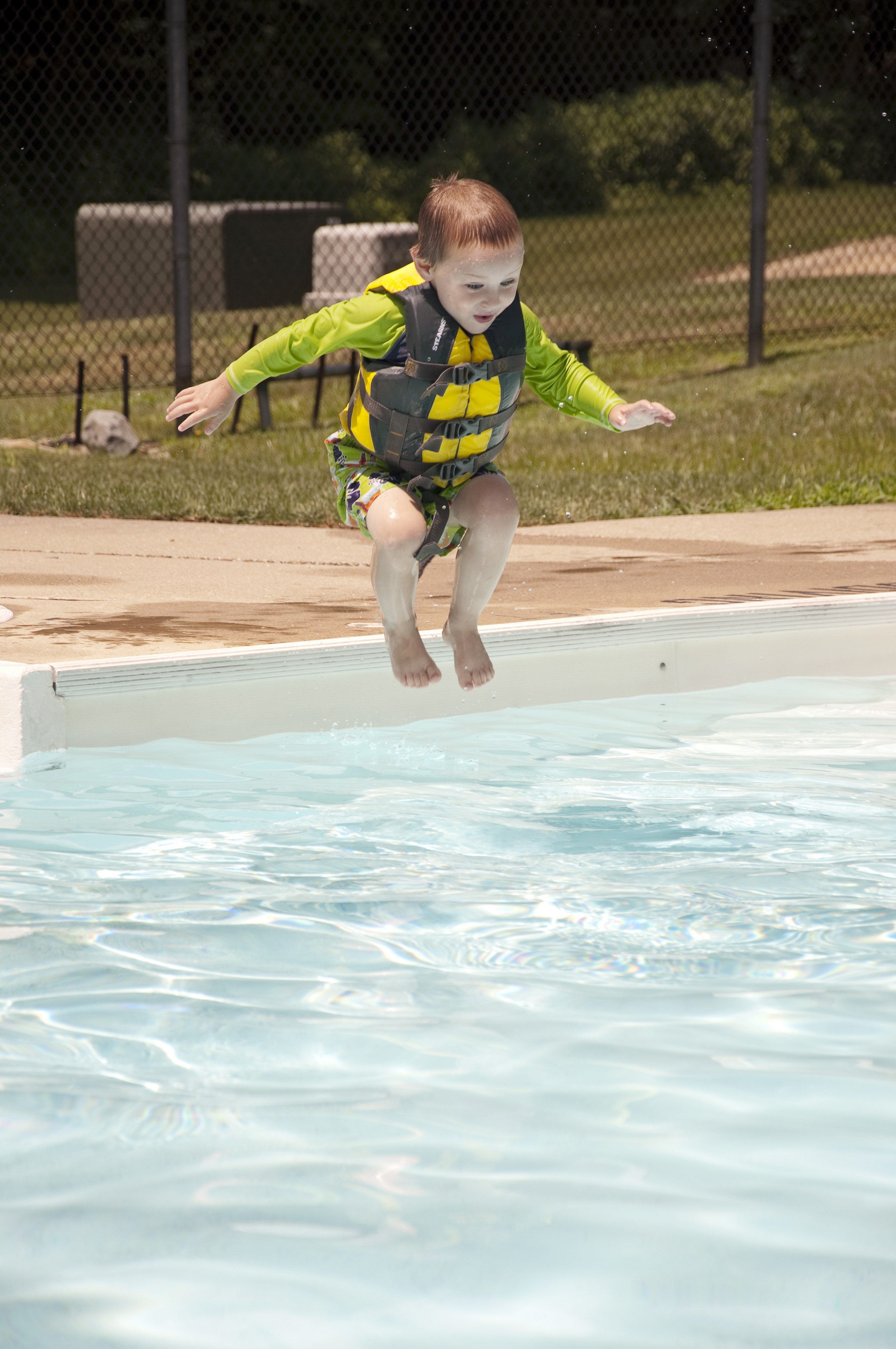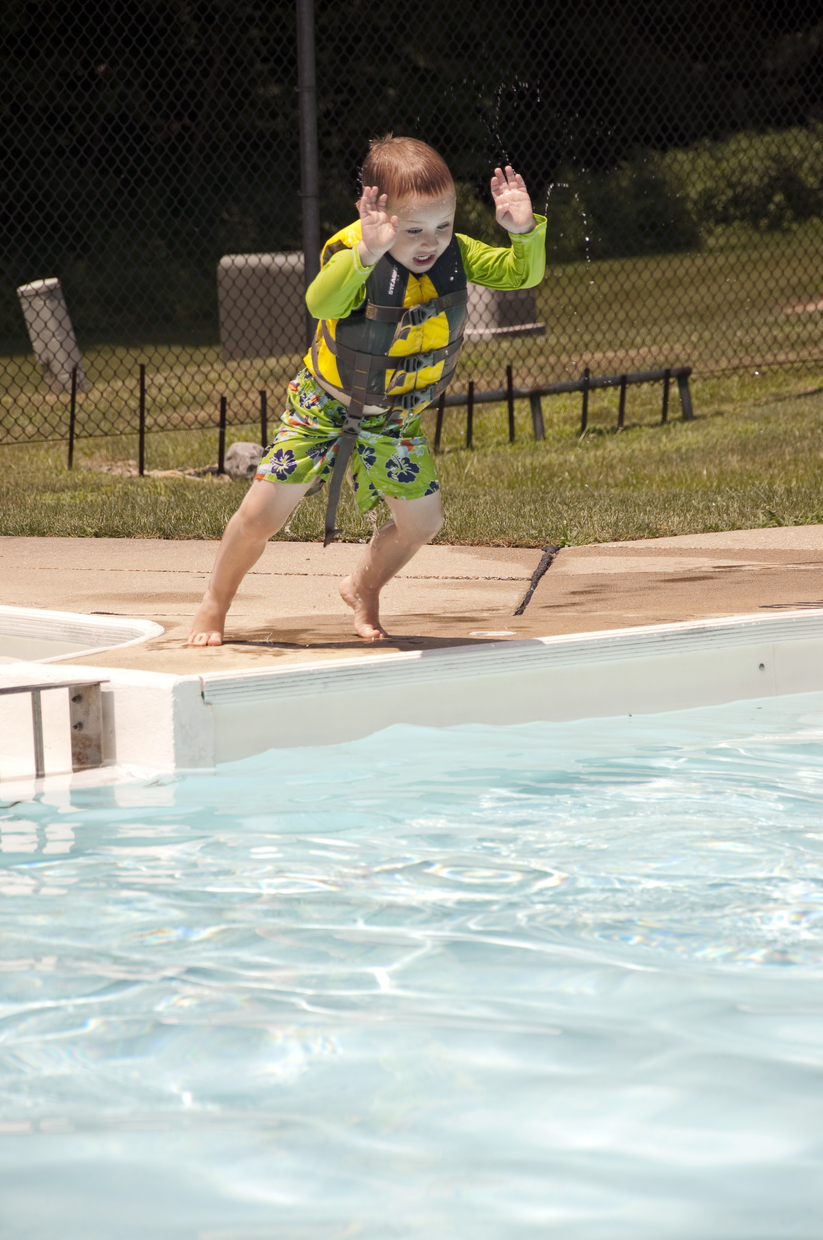 We went over to Erika’s today to have lunch and hang out and swim in the pool. This is Aiden’s first time in a pool this year, and he was a bit hesitant at first. He needed to hold my hands when he jumped in and he needed me to “swim” him around. After about ten minutes, though, he remembered that he is a fish. No more hand-holding. No more mommy at all. Check it out.